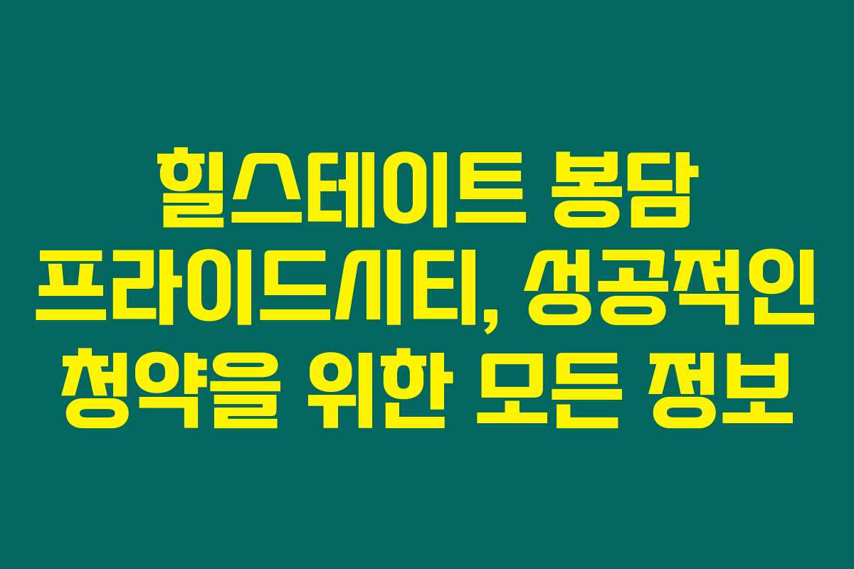 힐스테이트 봉담 프라이드시티를 찾고 계신가요? 힐스테이트 봉담의 청약을 고민 중이라면, 아래를 읽어보시면 더 나은 선택에 큰 도움이 될 거예요. 이 아파트의 특징과 장단점 그리고 청약 정보까지, 중요한 사항들을 꼼꼼히 정리해볼게요.