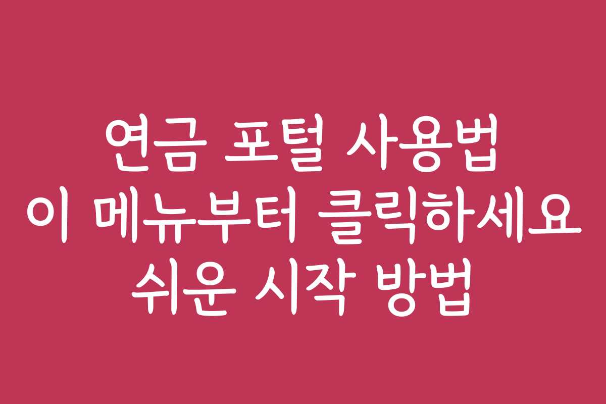 연금 포털 사용법이 어렵게만 느껴지신다면? 많은 사람들이 연금 포털에 접근하는 데 어려움을 겪고 있습니다. 하지만 이 글을 통해 연금 포털 사용법을 쉽게 이해하고, 필요한 정보를 바로 찾는 방법을 알려드리겠습니다. 연금 포털 사용법 이 메뉴부터 클릭하세요, 쉬운 시작 방법에 대해 알아보겠습니다.
