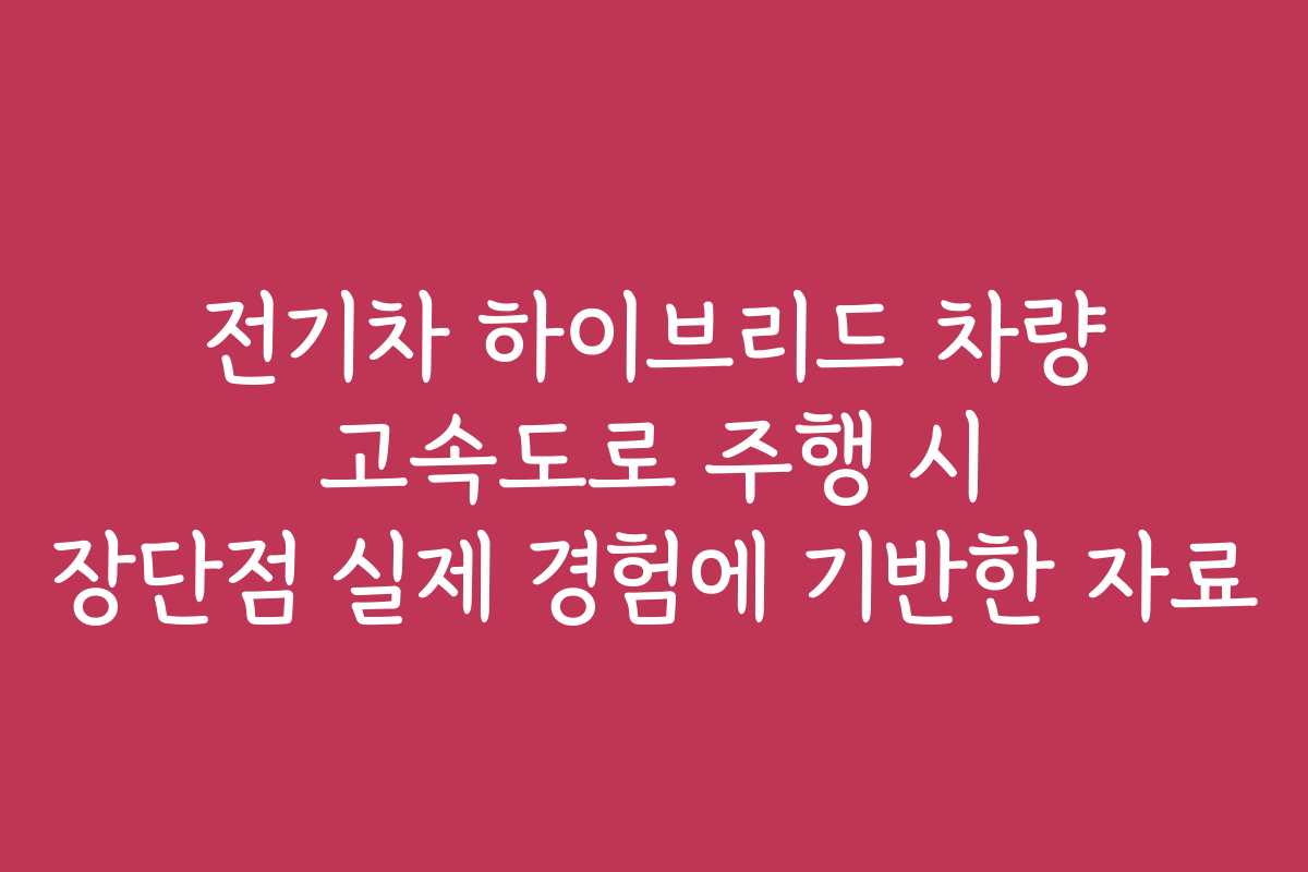 이 블로그 글은 전기차 하이브리드 차량의 고속도로 주행 시의 장단점을 실제 경험에 기반하여 설명하며, SEO에 맞춰 구조와 내용을 구성하였습니다.