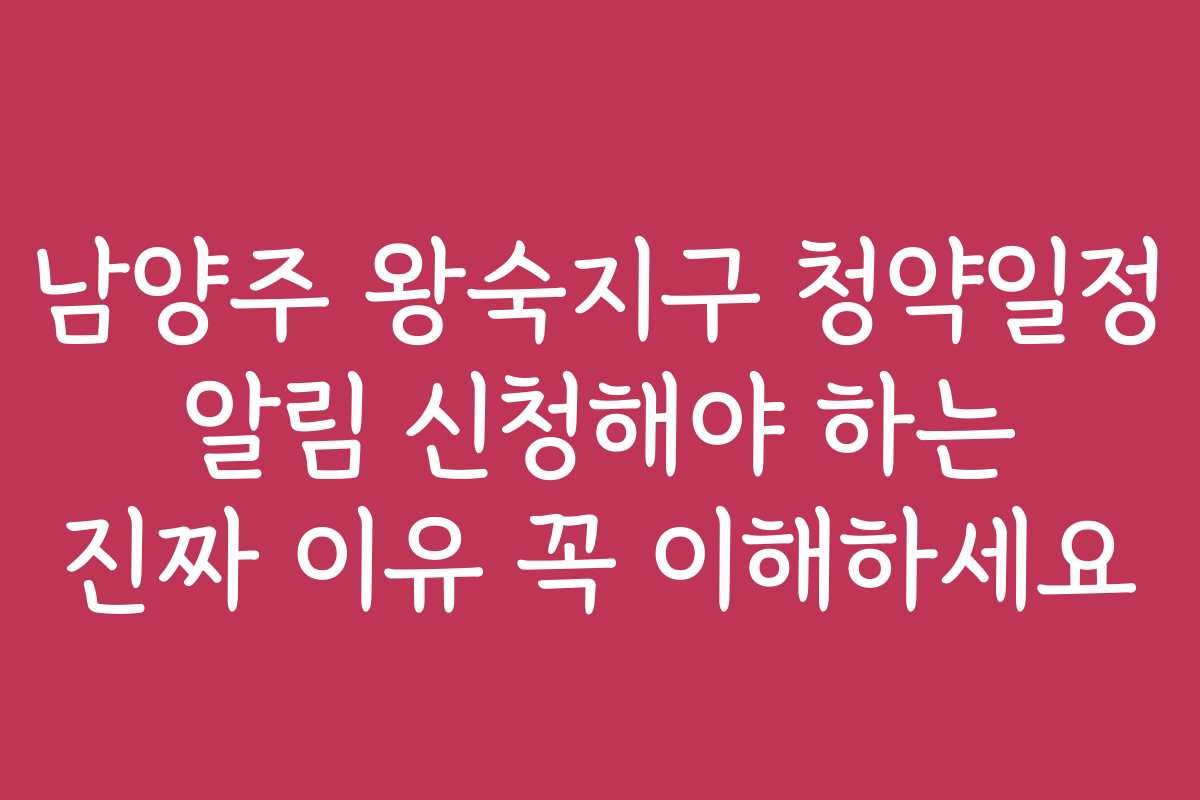 남양주 왕숙지구 청약일정 알림 신청해야 하는 진짜 이유 꼭 이해하세요