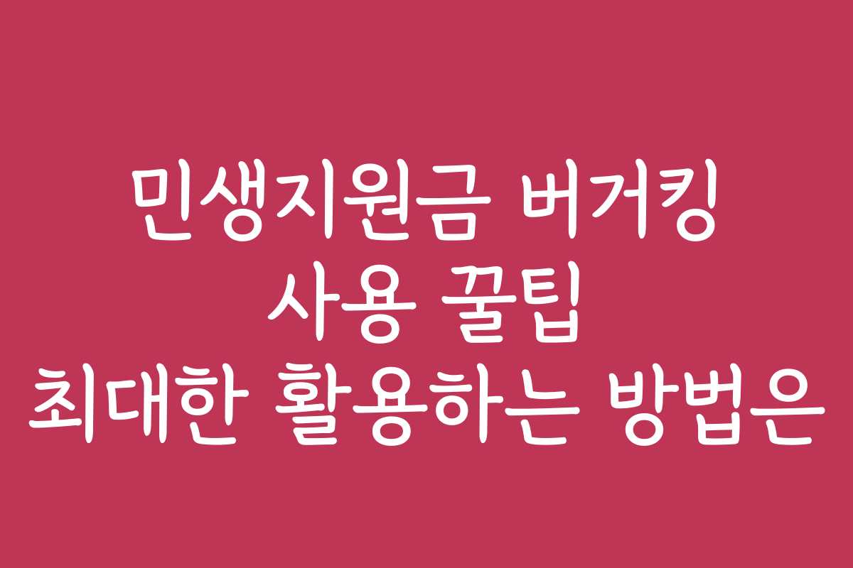 민생지원금을 버거킹에서 최대한 활용하는 방법은 무엇일까요?