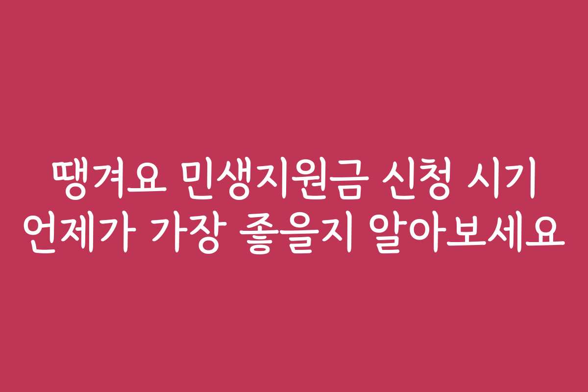 땡겨요 민생지원금 신청 시기, 왜 중요한가요?
