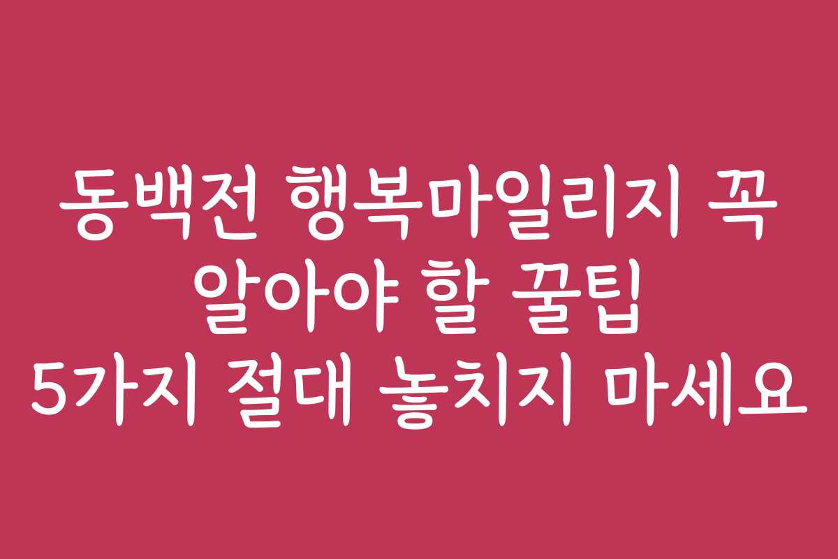 이 글은 동백전 행복마일리지를 활용하는 데 관한 유용한 팁을 초보자도 이해할 수 있도록 간결하고 친근하게 설명하고 있습니다. 구조적 요소와 SEO 최적화 내용에 맞춰 편집되었습니다.