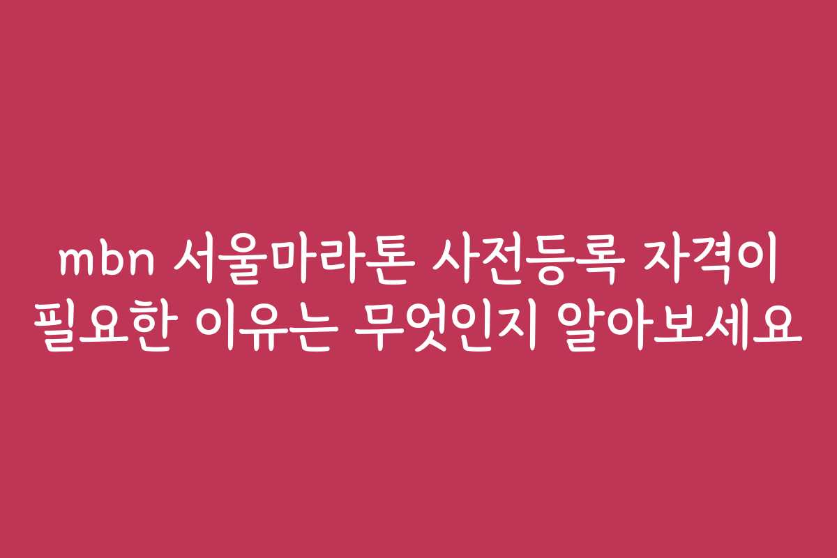 mbn 서울마라톤 사전등록 자격, 왜 필요한 걸까요?