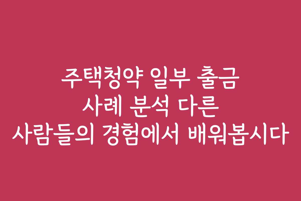 주택청약에서 일부 출금 사례를 통해 우리는 무엇을 배울 수 있을까요?