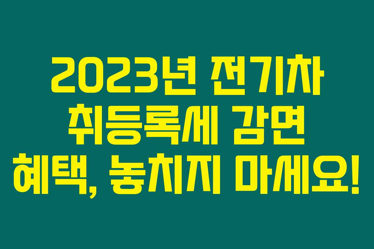 2023년 전기차 구입을 고려하고 있다면 취등록세 감면 혜택에 대한 정보를 꼭 살펴보세요. 전기차를 사면 최대 140만 원을 감면받을 수 있고 다양한 세금 감면 혜택이 제공됩니다. 전기차 구매를 계획하고 있다면, 아래를 읽어보시면 감면 혜택 및 신청 방법에 대한 자세한 내용을 확인할 수 있습니다.