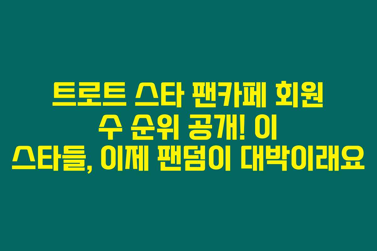 트로트 스타들의 팬카페 회원 수를 보고 깜짝 놀라는 분들 많으시죠? 팬카페의 회원 수가 단순한 숫자를 초월하여 각 스타의 인기도와 팬들의 애정을 고스란히 반영하고 있어요. 만약 당신이 트로트 스타들의 팬이라면, 그들의 팬카페 규모도 꼭 체크해야 할 요소 중 하나랍니다. 아래를 읽어보시면 트로트 스타들의 팬카페 회원 수 순위를 통해 당신이 좋아하는 스타의 인기를 한눈에 확인할 수 있어요.