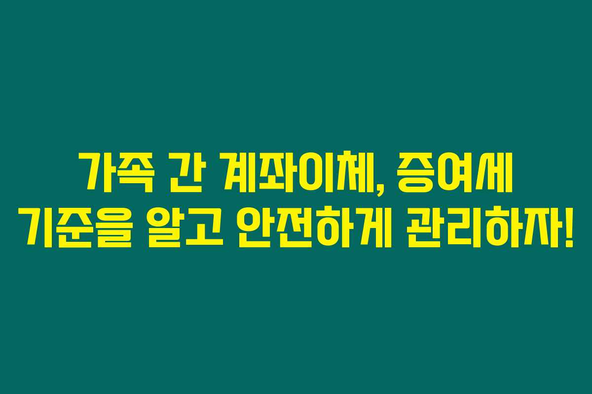 가족 간 계좌이체, 증여세 기준을 잘 이해하고 활용하길 바라며, 앞으로 건강하고 안전한 금융 생활 준비하세요!
