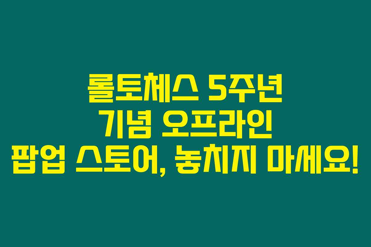 롤토체스 5주년 오프라인 팝업 스토어를 통해 특별한 경험을 얻고 다양한 보상을 누릴 수 있는 기회를 놓치지 마세요. 행사 기간 동안 준비된 다양한 프로그램과 경품들이 여러분을 기다리고 있답니다. 함께 즐길 수 있는 소중한 시간이니 꼭 참여해보세요!