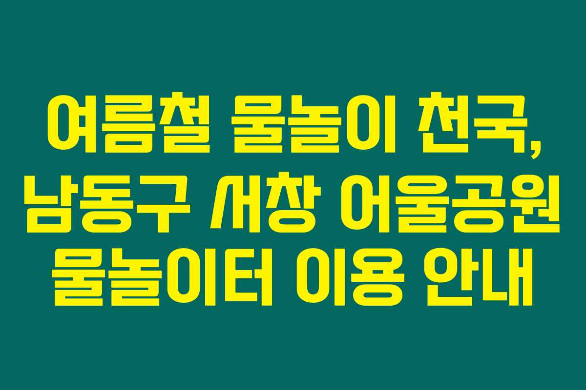 남동구에서 여름을 즐기는 핫 스팟을 발견했습니다. 바로 서창 어울공원 물놀이터인데요, 무료로 물놀이를 즐길 수 있는 이곳에 대해 알아보아요. 가기 전에 필수 정보를 체크해보면 좋을 것 같아요. 아래를 읽어보시면 물놀이에 대한 모든 궁금증이 해결될 거예요.