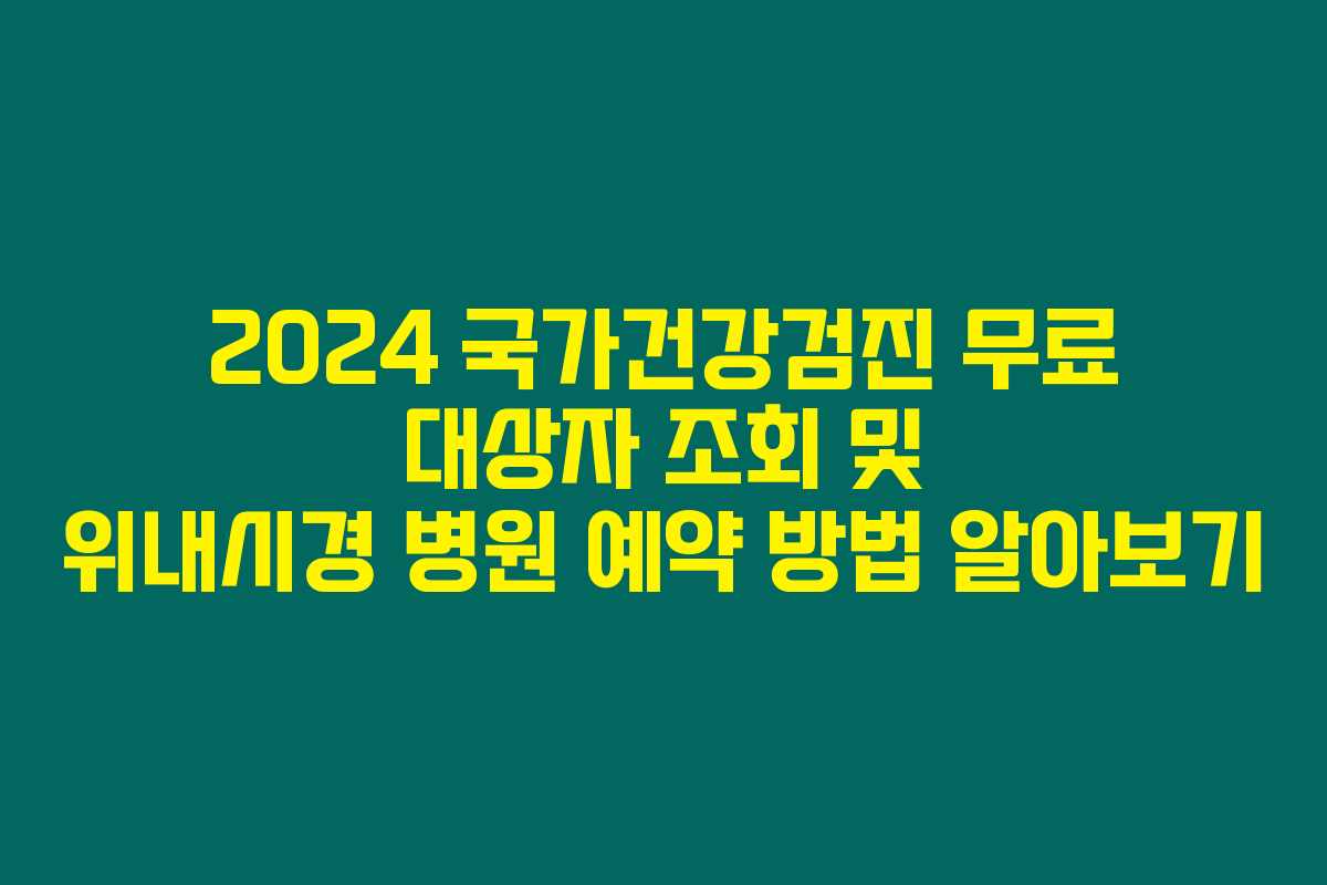 2024년에도 건강을 더욱 잘 지키기 위한 무료 국가건강검진이 진행됩니다. 이번 글에서는 검진 대상자 확인 방법과 위내시경 예약 절차를 포함하여, 여러분이 놓쳐서는 안 될 중요한 정보들을 담아 보았습니다. 아래를 읽어보시면, 건강검진을 어떻게 준비해야 할지 더욱 명확해질 것입니다.