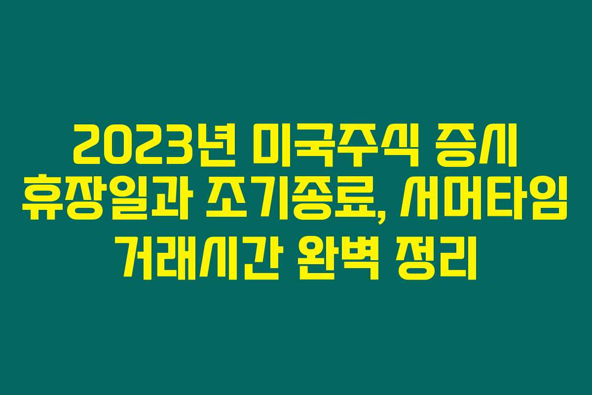 2023년 미국주식 증시의 휴장일과 조기종료 일정, 서머타임에 따른 거래시간 변동 사항을 잘 이해하는 것이 중요해요. 투자 결정을 내리기 전에 이러한 정보들을 체크하시면 더욱 계획적인 투자가 가능하답니다. 모두 성공적인 투자하길 바라요!