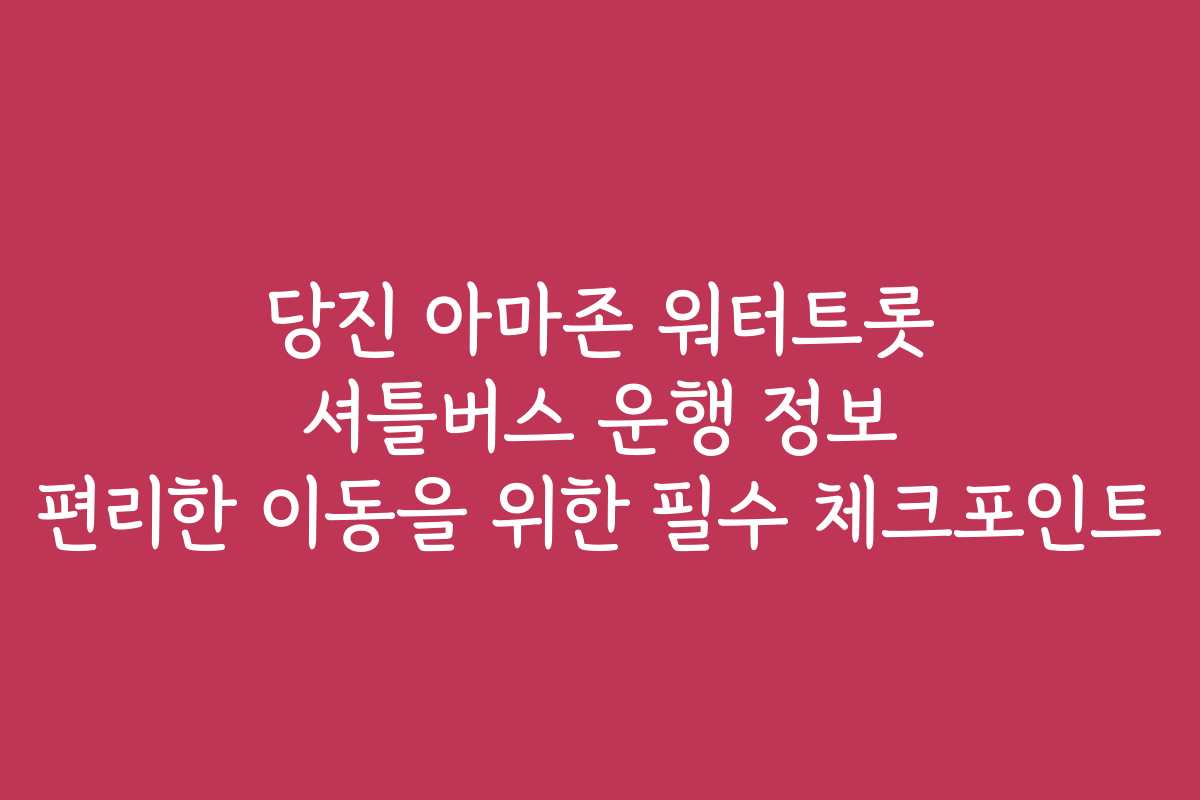 당진 아마존 워터트롯 셔틀버스 운행 정보 편리한 이동을 위한 필수 체크포인트