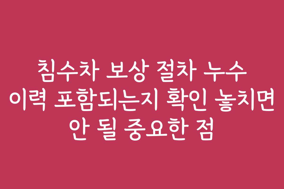서류 부족으로 인해 보상 절차가 지연될 수 있습니다. 특히 누수 이력 관련 서류는 반드시 준비해야 합니다.