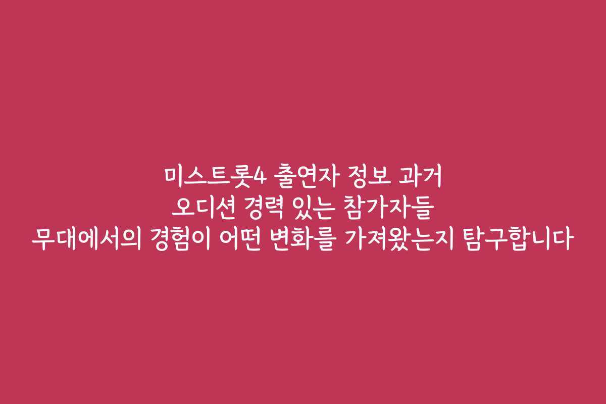 # 미스트롯4 출연자 정보 과거 오디션 경력 있는 참가자들 무대에서의 경험이 어떤 변화를 가져왔는지 탐구합니다