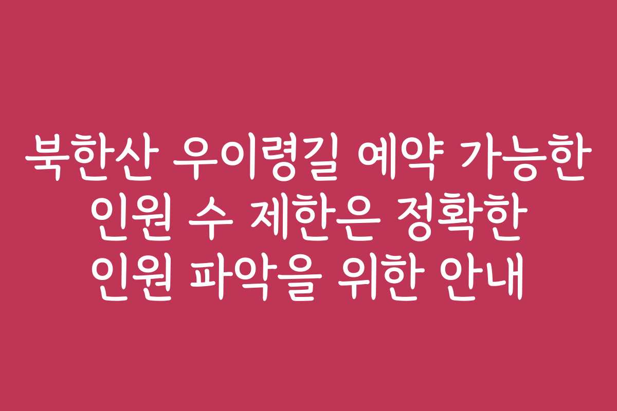 북한산 우이령길 탐방 시 예약 가능한 인원 수에 대한 안내는 방문자들의 편의를 증대시키고 안전한 산행을 위한 필수적인 요소입니다. 누가 얼마만큼 예약을 할 수 있는지 명확히 알고 있어야 안전하고 즐거운 등산이 가능합니다. 이 글을 통해 우이령길 예약 시 인원 수 제한에 대한 상세 정보를 제공하겠습니다.