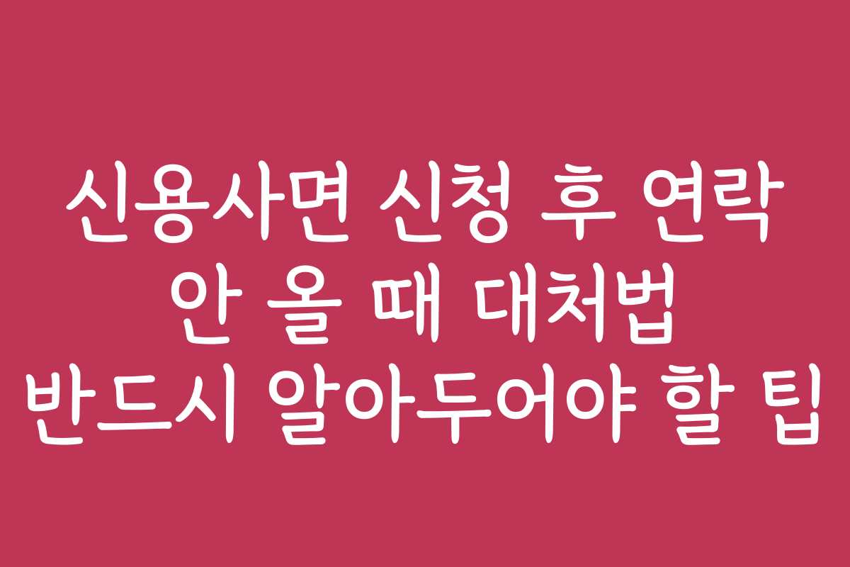 신용사면 신청 후 연락이 오지 않는다면 많은 이들이 불안감을 느끼기 마련입니다. 이런 상황에서 어떻게 대처할 수 있는지에 대한 정보는 매우 중요합니다. 신용사면 신청 후 연락이 오지 않는 경우의 대처법과 꿀팁을 함께 알아보아요.