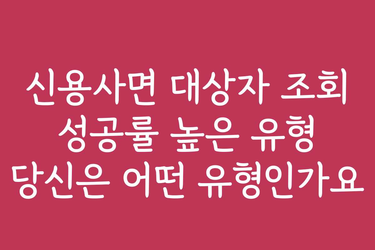 신용사면 대상자는 누구나 다를 수 있으며, 성공률이 높은 유형도 존재합니다. 하지만 자신의 유형을 모르거나 헷갈리는 경우가 많습니다. 신용사면 대상자 조회 성공률이 높은 유형을 알아보고, 당신이 어떤 유형인지 함께 찾아보세요.