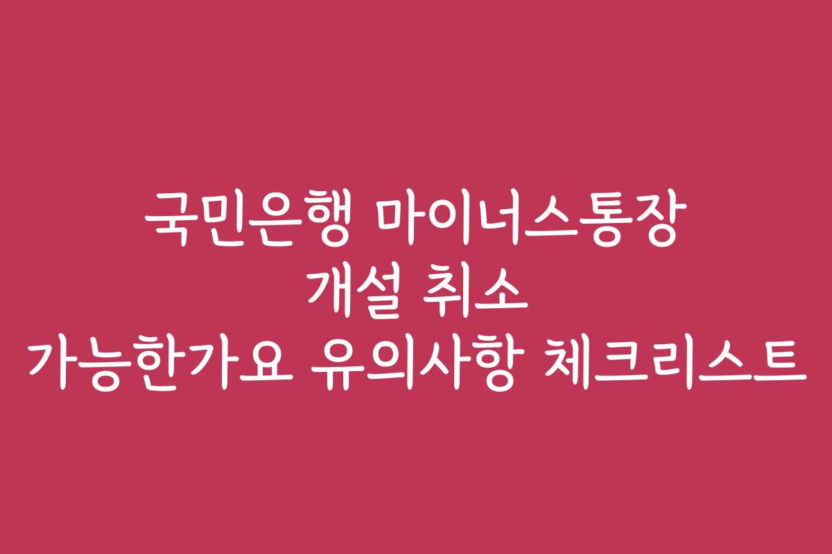 키워드: 국민은행 마이너스통장, 마이너스통장 취소, 금융 서비스, 개설 조건, 유의사항, 이자, 서류, 개인 금융, 개설 후 절차, 고객 경험, 재정 관리