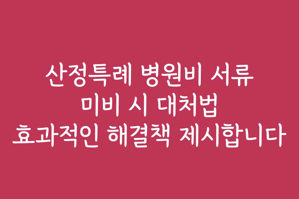 핵심 키워드: 산정특례, 병원비, 서류 미비, 대처법, 해결책, 진단서, 주치의 소견서, 치료 계획, 상담 서비스, 지원 방안, 경제적 부담