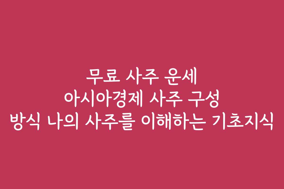 핵심 키워드: 사주, 무료 사주, 아시아경제, 운세, 사주 구성, 개인 운세, 사주 해석, 무료 서비스, 인생 전략, 오행, 신뢰도