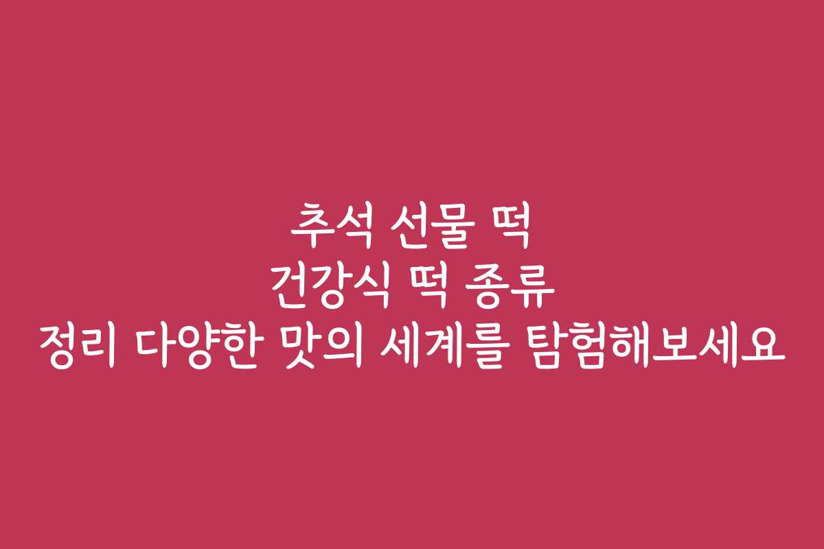 추석 선물 떡 건강식 떡 종류 정리 다양한 맛의 세계를 탐험해보세요