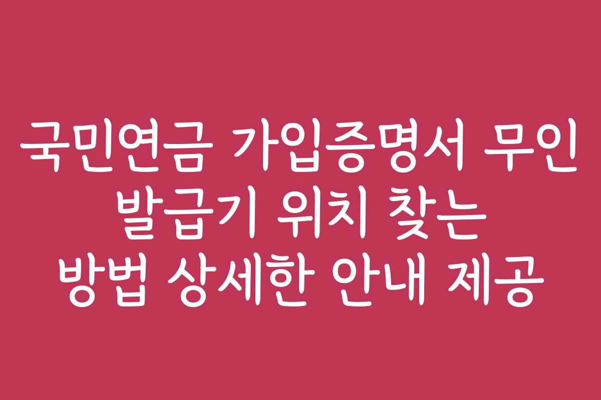 국민연금 가입증명서 무인 발급기 위치 찾는 방법 상세한 안내 제공