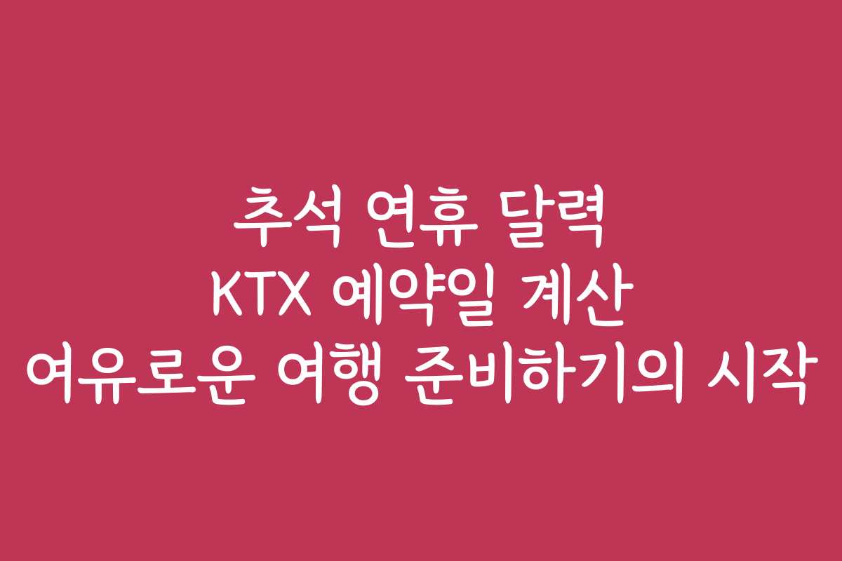 핵심 키워드: 추석 연휴, KTX 예약, 여유로운 여행, 여행 준비, 달력, 예약일, 교통편, 숙소 예약, 체크리스트, 요금 비교, 여행경로