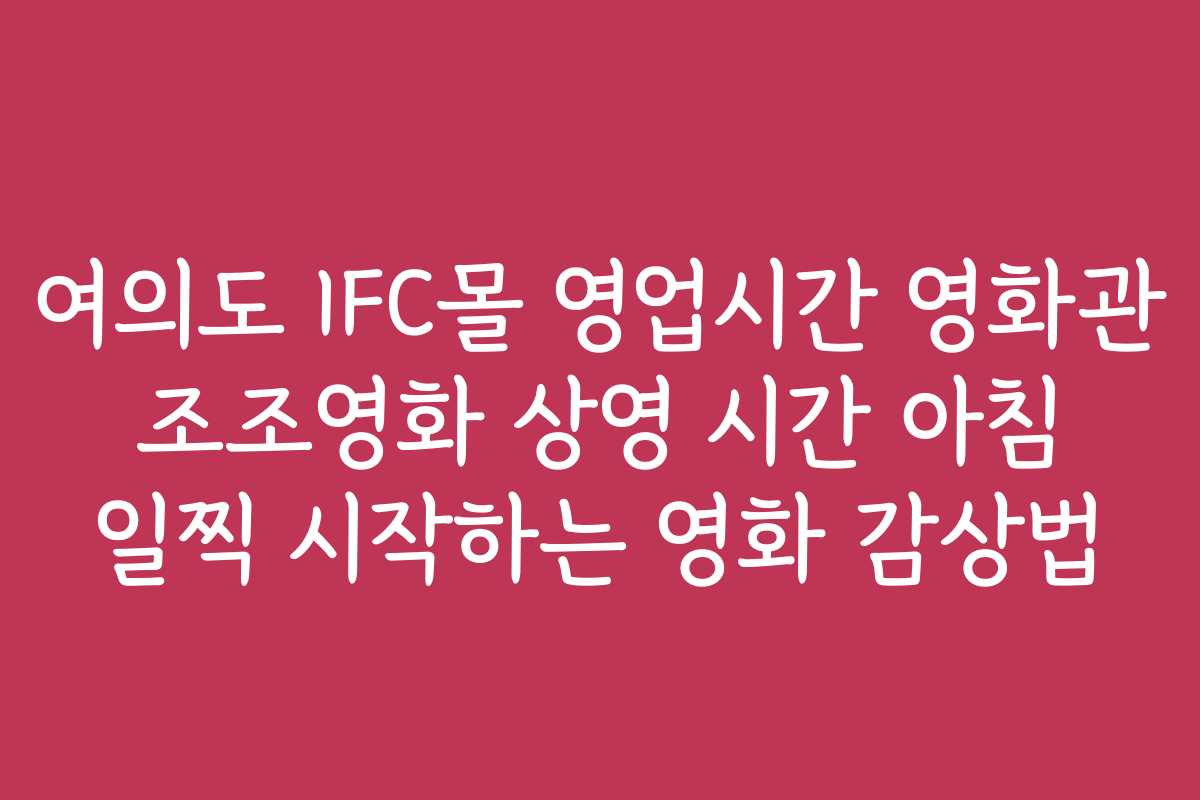 키워드: 여의도 IFC몰, 영업시간, 영화관, 조조영화, 상영 시간, 아침, 영화 감상법, 예매, 주변 즐길 거리, 영화 추천, 편리한 관람