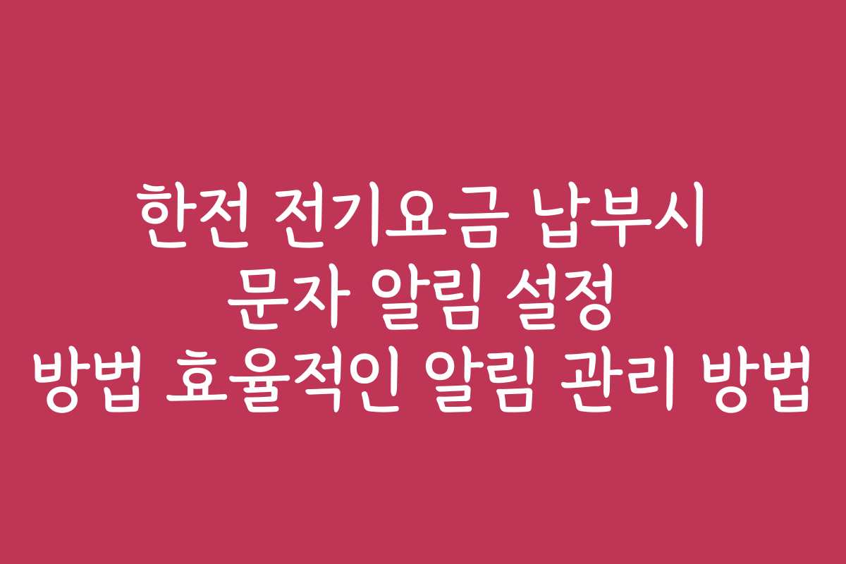 핵심 키워드: 한전, 전기요금, 납부, 문자 알림, 설정 방법, 관리, 주의사항, 요금 청구서, 납부 마감, 연체 알림, 효율적인 관리