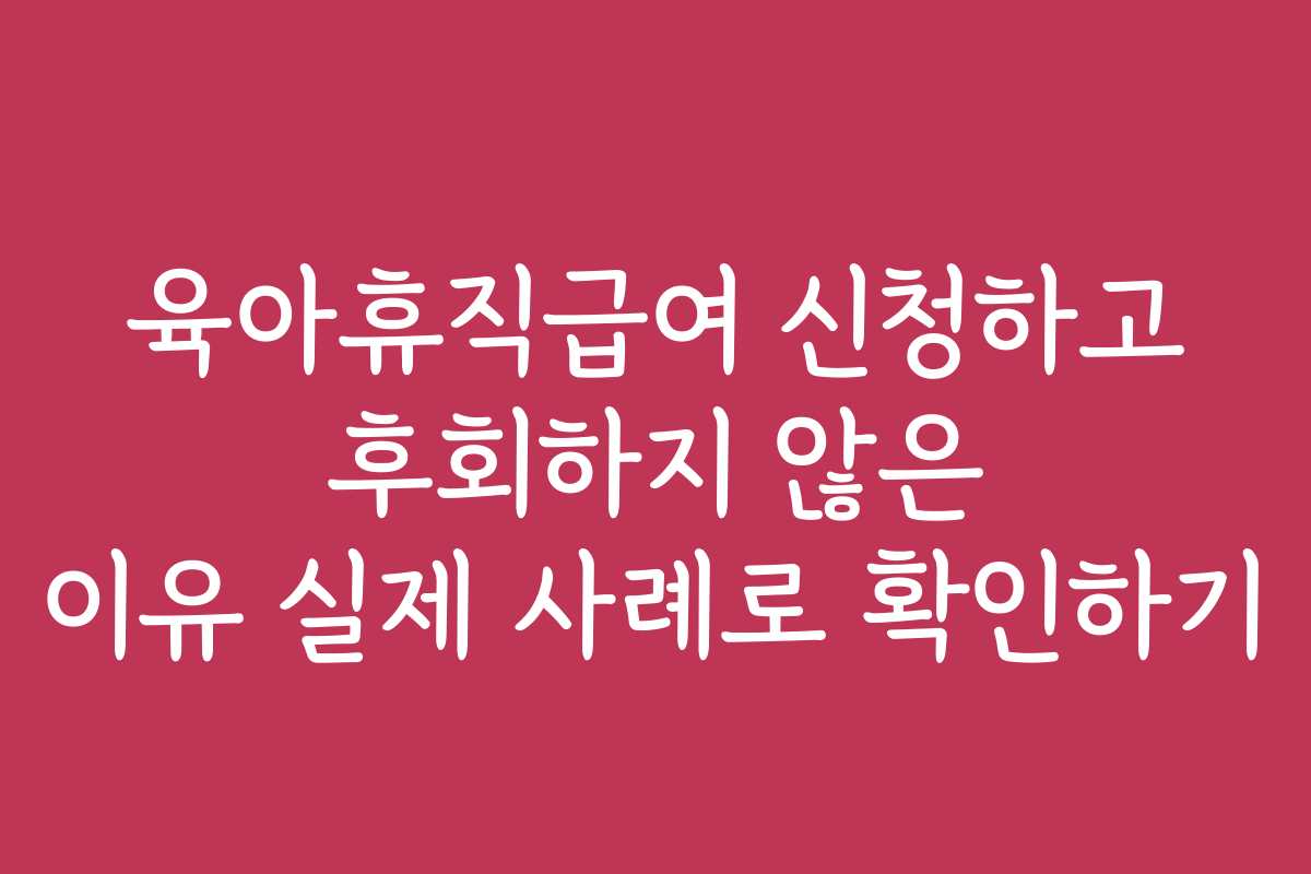 육아휴직을 신청하면서 후회할까 걱정했던 많은 분들이 있습니다. 하지만 육아휴직급여 신청 후 긍정적인 경험을 한 사례들을 통해 그 이유를 함께 알아보려고 합니다. 실제 사례를 통해 여러분도 육아휴직의 혜택을 누릴 수 있음을 확인하세요.